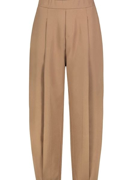 – wysokość pasa: high waist- fason: Tapered fit- krój nogawek: wąski- pas / ściągacz: elastyczny- kieszenie: wpuszczane- detale: kant- look: jednokolorowy