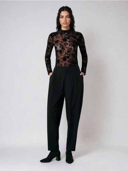 Sinsay – Spodnie materiałowe barrel z zakładkami – czarny –