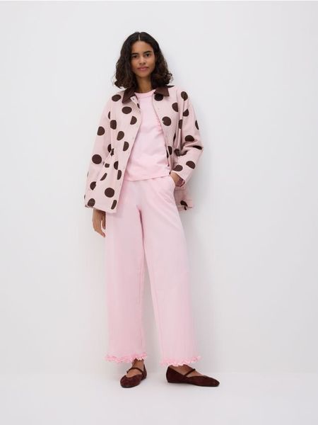 Bawełniane spodnie z falbanką – pastelowy róż