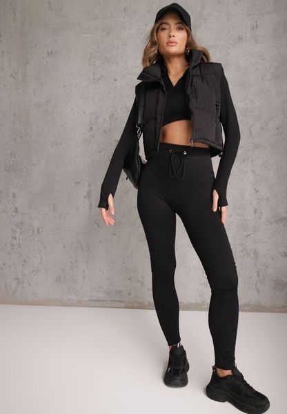 Czarny Sportowy Komplet Spodnie Wiązane w Pasie i Top z Wycięciem na Kciuk Tidale