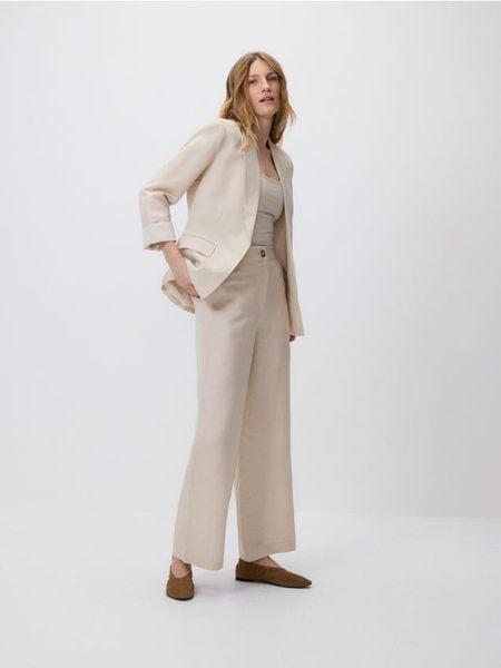 Spodnie o swobodnym fasonie, wykonane z tkaniny z lnem i wiskozą.