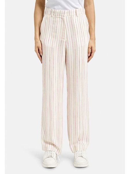 – wysokość pasa: high waist- fason: regular fit- krój nogawek: prosty- szlufki na pasek: tak- zapięcie: haczyk i suwak- kieszenie: wpuszczane- detale: kant- wzór: paski