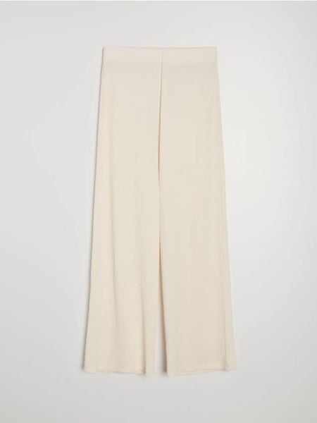 Sinsay – Strukturalne spodnie wide leg – kremowy –