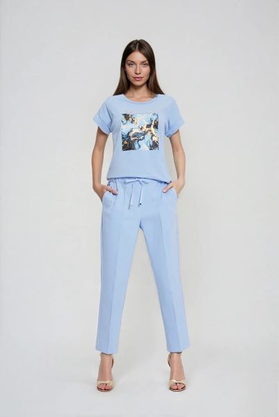 Jasnoniebieski Komplet Bluzka i Spodnie z Prostymi Nogawkami i Gumką Daeirassa