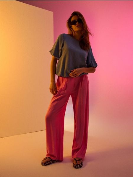 Sinsay – Wiskozowe spodnie wide leg – różowy –
