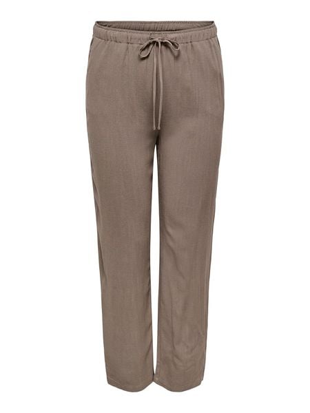 – z dodatkiem lnu- wysokość pasa: high waist- pas: ściągacz tunelowy- kieszenie: wpuszczane- krój: prosty- look: jednokolorowy