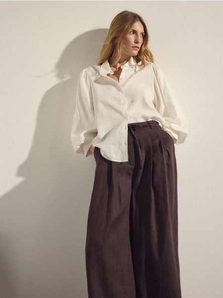 Spodnie o swobodnym kroju, wykonane z lnu.
