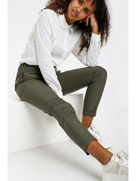 – pas / ściągacz: elastyczny- szlufki na pasek: tak- kieszenie: wpuszczane i tylne- krój: luźny- look: jednokolorowy