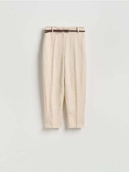 Spodnie o lekko zwężonym kroju, wykonane z tkaniny z lnem i wiskozą.
