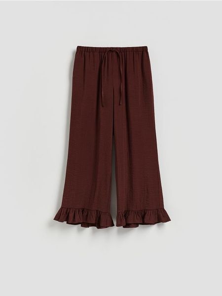 Luźne spodnie z falbankami – bordowy