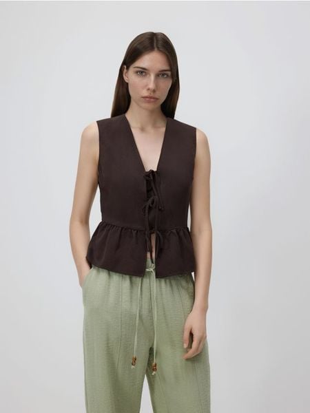 Spodnie o swobodnym kroju, wykonane z tkaniny z wiskozą.