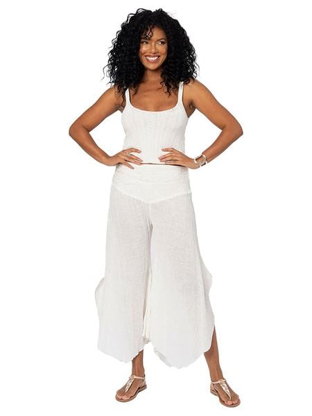 Biały Komplet z Bawełny Wiązana Bluzka i Szerokie Spodnie Palanniela