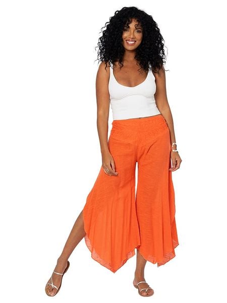 Pomarańczowy 2-częściowy Komplet Szerokie Spodnie z Gumką i Przedłużany Top Nanisa