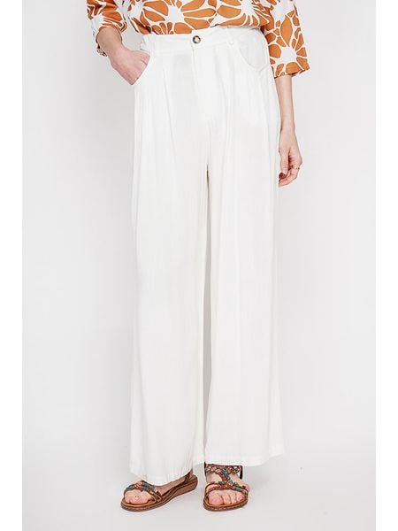– z dodatkiem lnu- wysokość pasa: high waist- zapięcie: guzik i suwak- szlufki na pasek: tak- kieszenie: wpuszczane- krój: luźny- look: jednokolorowy