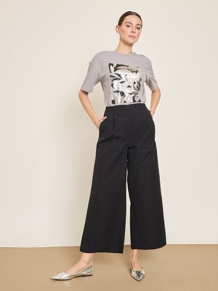 Czarny Komplet z Tłoczeniami Szerokie Spodnie i Bluzka o Kroju Bombki Frolloti