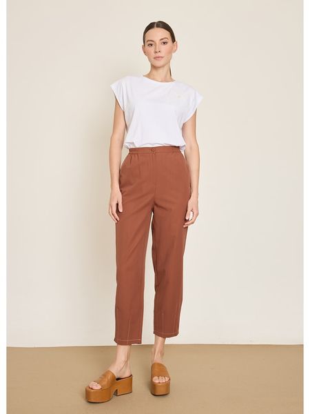 kobieta limango.pl brązowe spodnie materiałowe damskie spodnie materiałowe damskie ze sklepu limango.pl spodnie materiałowe damskie bgn kobieta bgn
