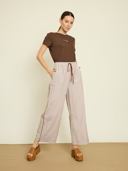 Szary Bawełniany Komplet Dopasowany T-shirt i Szerokie Spodnie Neliava