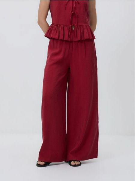 Szerokie spodnie z modalem – bordowy