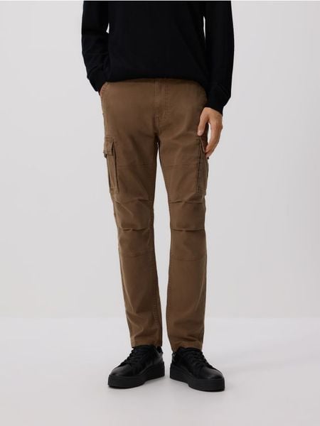 Spodnie typu cargo o dopasowanym kroju, wykonane z tkaniny z bawełną.