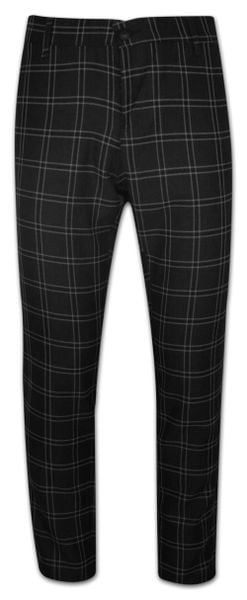 Spodnie Męskie, Czarne w Kratkę, z Mankietami, Casualowe, Zwężane, Chinosy z Elastanem -RIGON