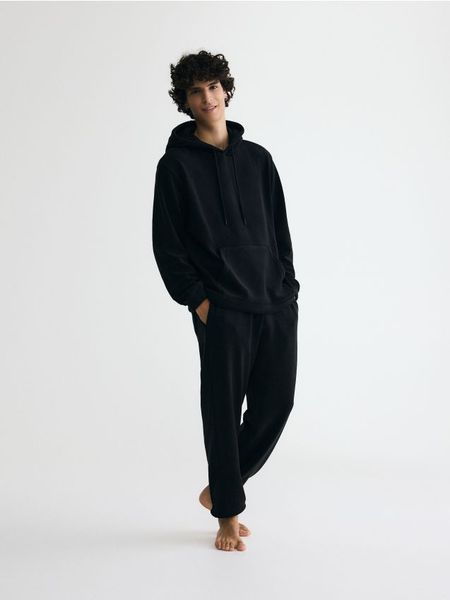 Spodnie o regularnym kroju, wykonane z dzianiny.