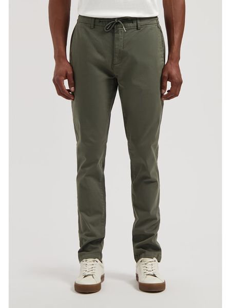 – wysokość pasa: regular waist- fason: slim fit- krój nogawek: wąski- szlufki na pasek: tak- pas: ściągacz tunelowy- zapięcie: guzik i suwak- kieszenie: wpuszczane i tylne- look: jednokolorowy