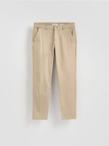 Spodnie typu chino o dopasowanym kroju, wykonane z tkaniny z lyocellem.