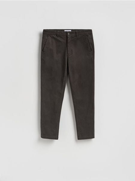 Spodnie typu chino, wykonane z bawełnianej tkaniny.