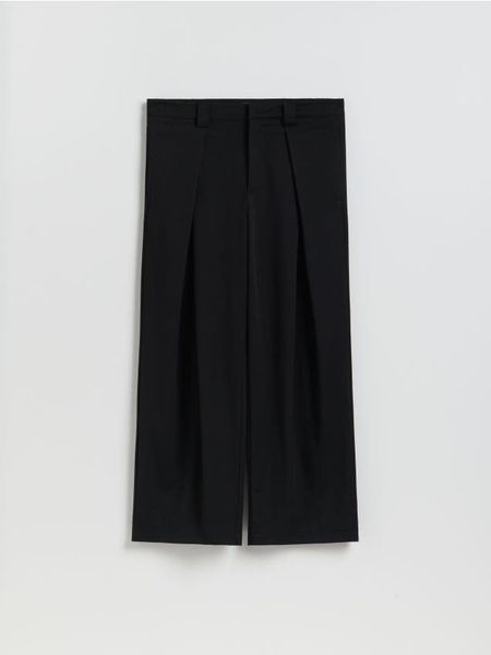 Spodnie o swobodnym kroju, wykonane z tkaniny z dodatkiem wiskozy.