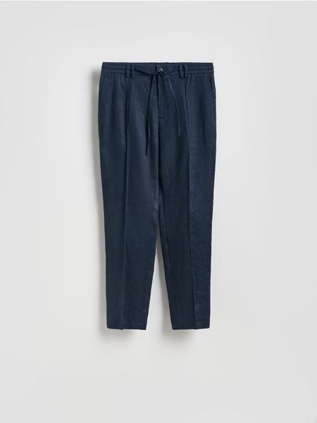 Lniane spodnie jogger – granatowy