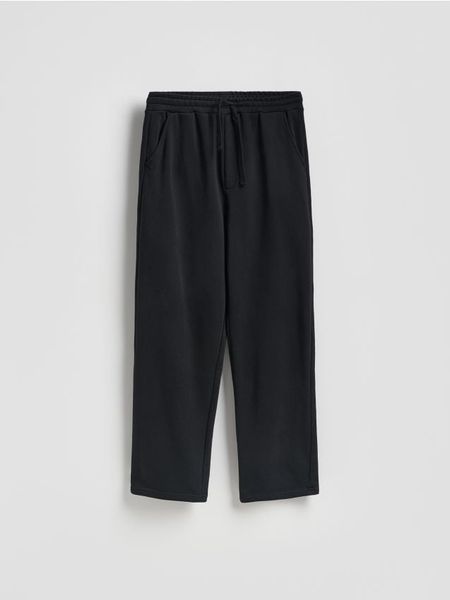 Spodnie o swobodnym kroju, wykonane z dzianiny z bawełną.