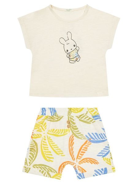 United Colors Of Benetton Komplet t-shirt i spodenki 3O7SAK014 Beżowy Regular Fit