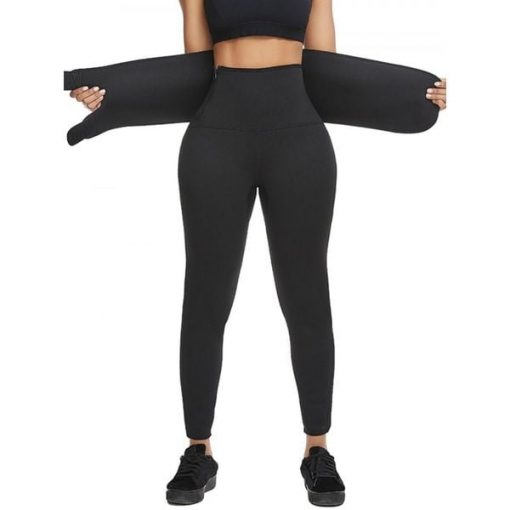 Spodnie fitness neoprenowe wyszczuplające damskie z paskiem