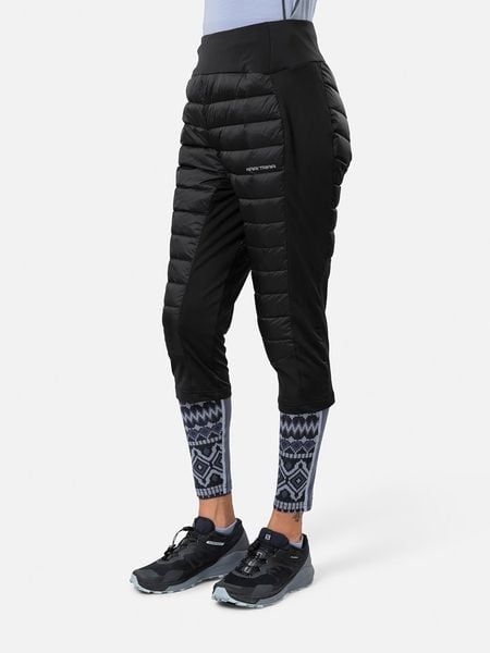 – z dodatkiem poliamidu pochodzącego z recyklingu- wypełnienie: puch i pierze- wodoodporność- właściwości termoizolacyjne- wysokość pasa: high waist- pas / ściągacz: elastyczny- długość nogawek: 3/4- krój: prosty- look: jednokolorowy