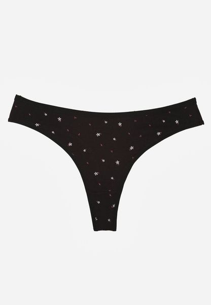 Czarne Majtki Stringi z Bawełną w Kwiaty Calylia