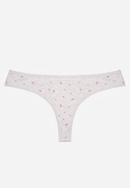 Jasnoszare Majtki Stringi z Bawełną w Kwiaty Calylia