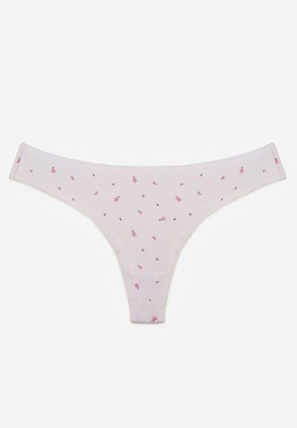 Białe Majtki Stringi z Bawełną w Kwiaty Calylia