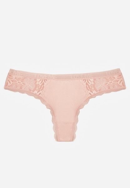 Jasnoróżowe Majtki Stringi z Subtelną Koronką z Bawełną Adriedah
