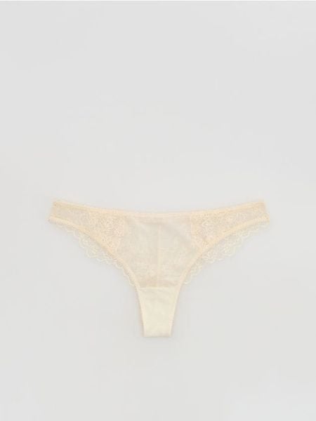 Koronkowe majtki stringi – złamana biel