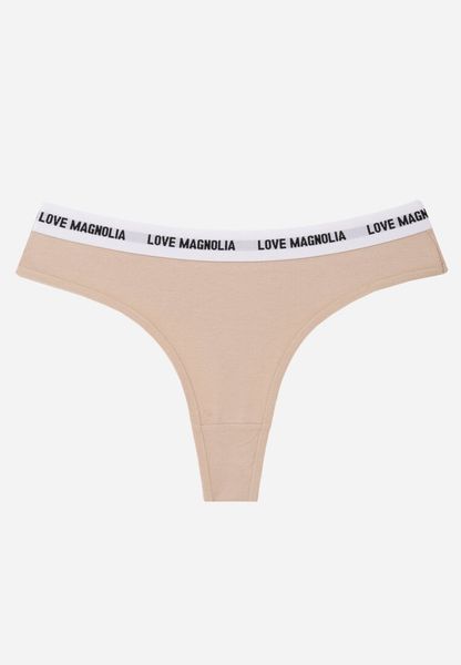 Beżowe Majtki Typu Stringi z Bawełną i Napisami Veza