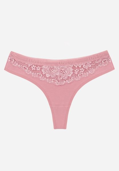 Różowe Majtki Typu Stringi z Bawełną i Koronką Zeliche