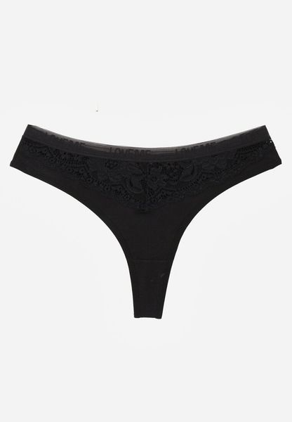 Czarne Majtki Typu Stringi z Bawełną i Koronką Zeliche