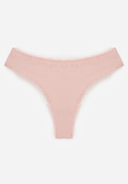 Różowe Majtki Stringi z Bawełną z Koronką Aethimilia