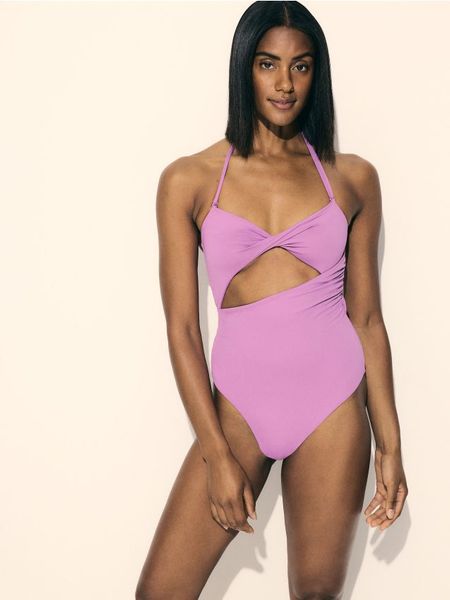 Jednoczęściowy strój plażowy z wycięciem – fioletowy
