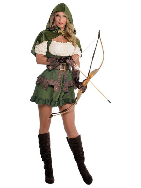 Na kostium składa się:- 1 sukienka- 1 peleryna- 1 para rękawiczek- 1 pasek- dekolt carmen- pelerynka z kapturem- krótki krójUwaga: Oferta obejmuje tylko wyżej opisany komplet.