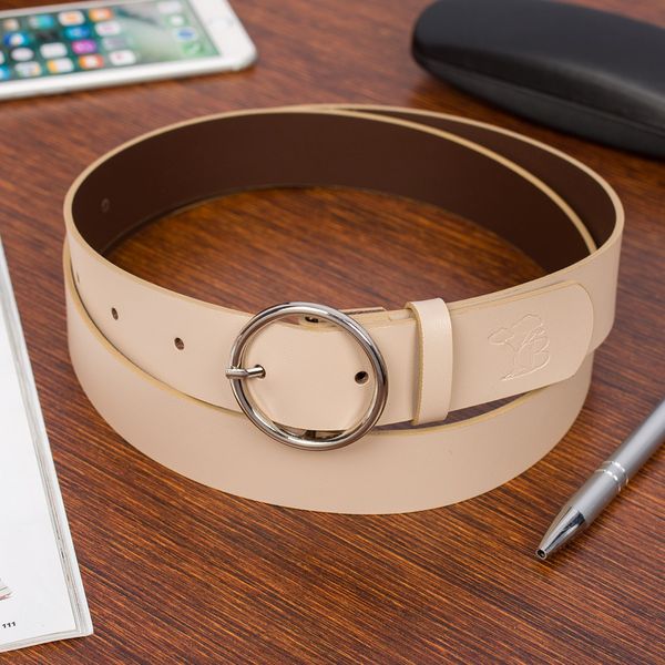 Skórzany pasek damski do spodni sukienki cielista skóra nat. 3,5 cm Beltimore B85 : Kolory – ecru, kremowy, Rozmiar pasków – r.105-120 cm