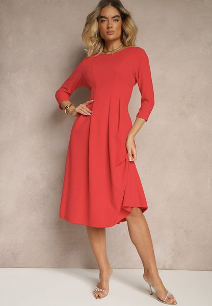 Czerwona Sukienka o Rozkloszowanym Kroju z Ozdobnymi Przeszyciami Reanelis