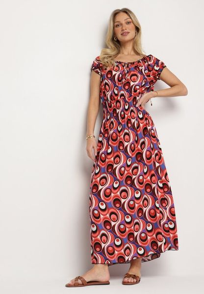 Różowa Sukienka z Geometrycznym Wzorem i Hiszpańskim Dekoltem Tosile