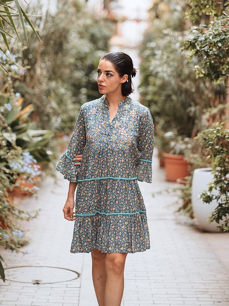 – czysta bawełna- dekolt: z rozcięciem- długość rękawa: 3/4- krój rękawów: rozszerzany do dołu- dolny brzeg: z falbankami- krój: prosty- wzór: na całości