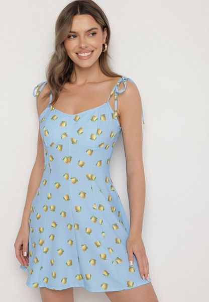 Jasnoniebieska Sukienka na Wiązanych Ramiączkach w Cytryny Efrunea